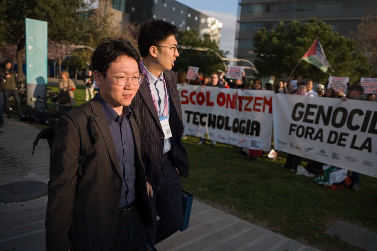 Membres de diverses entitats protesten contra la vulneració dels drets humans i els "genocidis" vinculats al model tecnològic