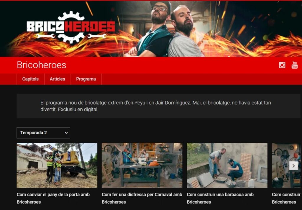 TV3 ha eliminat de la programació prevista per aquest estiu la reemissió dels vint programes de Bricoheroes, a càrrec de Lluís Jutglar(Peyu) i Jair Domínguez, que es van difondre pel canal de Youtube de la Corporació Catalana de Mitjans Audiovisuals (CCMA) entre els mesos d’octubre de l’any passat i març de 2021. Ho ha fet perquè el Consell de l’Audiovisual de Catalunya (CAC) va estudiar els quatre primers capítols emesos els dies 5 i 6 de juliol i ha obert un expedient a la CCMA per les infraccions greus comeses en la publicitat que s’hi fa. Concretament, l’informe del CAC hi ha detectat set incidències “per manca d’advertiment” de les empreses anunciades, tres per “prominència indeguda” i una d’aquestes tres, a més, per “prominència indeguda i incitació directe a la compra”. En tres casos, es considera que la publicitat emesa pot incórrer en el supòsit de ‘publicitat prohibida’. Aquests programes i tots els que formen part de les dues temporades de Bricoheroes emeses a les xarxes socials de TV3 continuen, però, accessibles al portal del programa a la CCMA.
