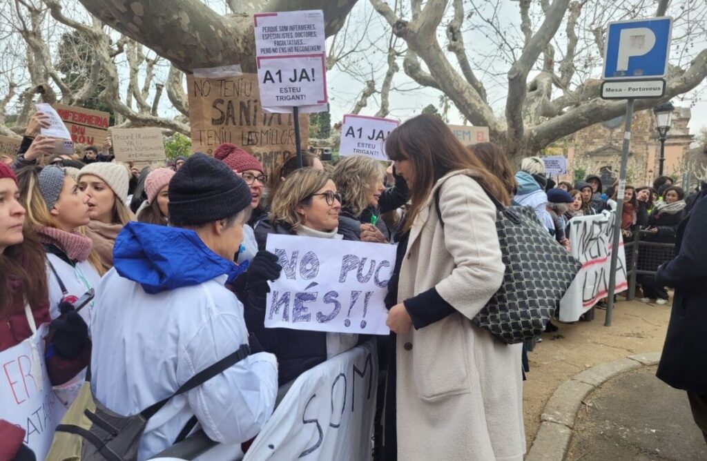 Borràs té el costum d’atansar-se a les protestes, quan la majoria de polítics en fugen. L’endemà ho va tornar a fer i aquest cop els sanitaris la van rebre amb una sonora xiulada. És el que té anar a l’era, que agafes pols.