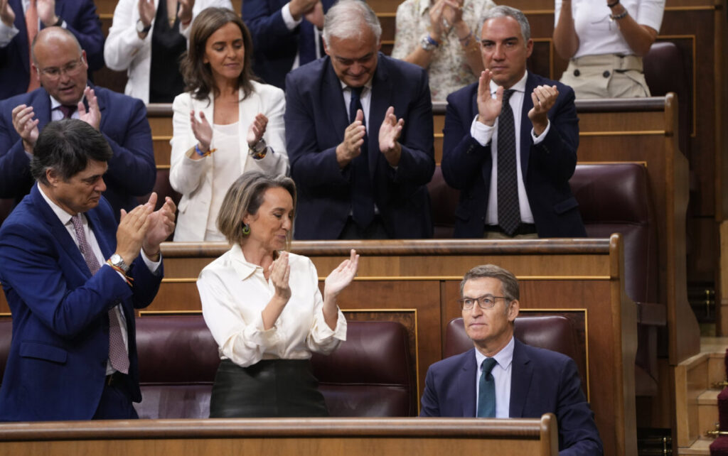 El Congrés dels Diputats ha rebutjat aquest divendres definitivament la investidura del líder del PP, Alberto Núñez Feijóo, que s’ha quedat amb 172 vots a favor (PP, Vox, UPN, Coalició Canària), 177 en contra (PSOE, Sumar, ERC, Junts, Bildu, PNB i BNG) i un vot nul del diputat de Junts EduardPujol, que s’ha equivocat. La votació d’aquest divendres obre una nova etapa en què previsiblement Felip VI convocarà una nova ronda de consultes a principis de la setmana que ve per encarregar, o no, la investidura al socialista Pedro Sánchez.