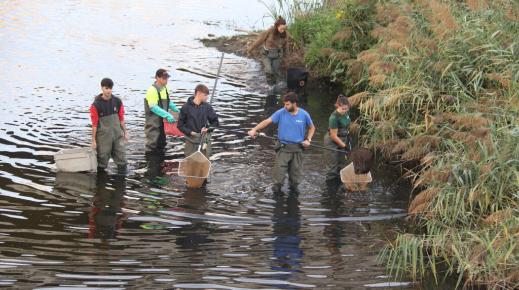 Es tracta d’un sistema en què es genera un camp elèctric a l’aigua. Això fa que els peixos quedin atordits i sigui més fàcil agafar-los per posteriorment separar les espècies autòctones de les invasores. En el cas dels peixos autòctons, es traslladen al riu Ter on hi ha més quantitat d’aigua i es garanteix la seva supervivència. En el cas de les espècies invasores (majoritàriament carpes) se sacrifiquen. El consistori ja va encarregar actuacions similars a la primavera.