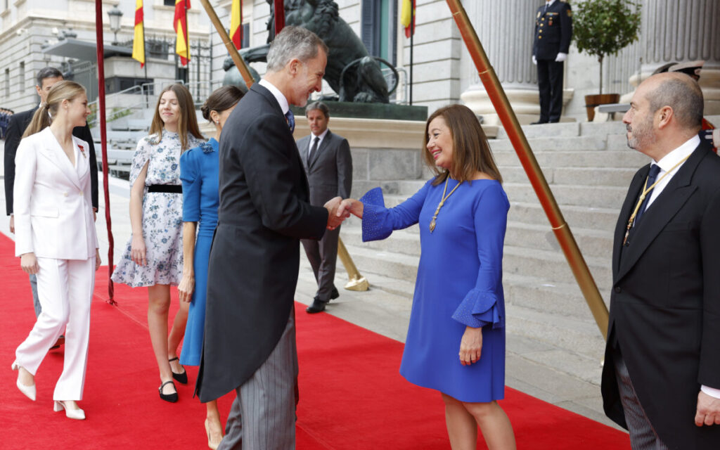 Després de passar revista, la comitiva reial es traslladarà a les escales del Congrés, on la Família Reial serà rebuda per la presidenta de la cambra baixa, FrancinaArmengol, abans de saludar els membres de les meses del Congrés i del Senat. Felip VI entrarà al Congrés per la Porta dels Lleons, i passarà a l’hemicicle, on sonarà l’himne d’Espanya. Després, la presidenta del Congrés pronunciarà un discurs i cedirà la paraula al monarca.