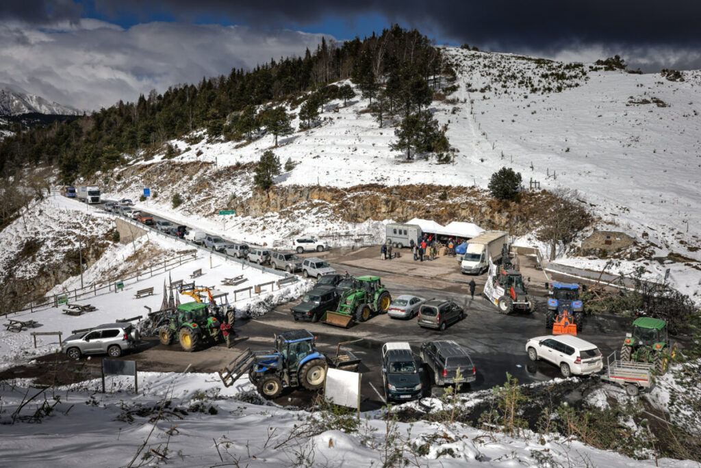 Al tall del Ripollès s’hi mantenen una cinquantena de pagesos que han anat fent torns al llarg del dia. Han tallat la carretera amb diversos tractors, bales de palla i també alguns arbres que han entravessat al mig de la via.