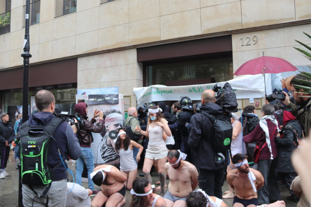 Els Mossos d’Esquadra han dispersat aquest dimecres els manifestants propalestins concentrats davant de la seu d’ACCIÓ al passeig de Gràcia a cops de porra i empentes. Unitats de policies antidisturbis han actuat durant la performance pacífica amb què un grup ha denunciat les dures condicions en les presons palestines, amb una sèrie de persones amb poca roba agenollades a terra, recull l’ACN.