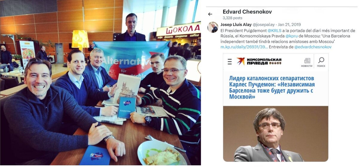Edvard Chesnokov, el periodista que va fer de baula del ‘procés’ al diari moscovita Komsomolskaya Pravda i que va escriure 23 articles a El Punt Avui a favor de la independència de Catalunya i de la gestió de Vladimir Putin entre el setembre del 2019 i el febrer del 2022, va lamentar aquest diumenge al seu canal de Telegram que el partit d’ultradreta Alternativa per Alemanya no pugui formar govern als estats federats de Saxònia i Turíngia malgrat els bons resultats electorals que hi ha aconseguit. Chesnokov, editor de política internacional a Komsomolskaya Pravda, mitjà on destaca que va ser el primer periodista rus que va entrevistar Carles Puigdemont després que fugís a Bèlgica, ha mostrat reiteradament en els seus articles, intervencions radiofòniques i missatges a les xarxes socials el seu suport a Afd.