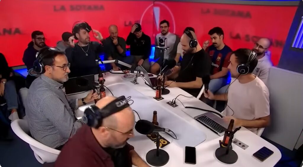 Per arrodonir el posicionament ideològic de La Sotana, el conductor de la tertúlia, Andreu Juanola, tertulià habitual del programa Onze de TV3 i que periòdicament treballa i participa en podcasts del 3cat, la va acomiadar cridant “visca el Barça i visca Catalunya lliure!”