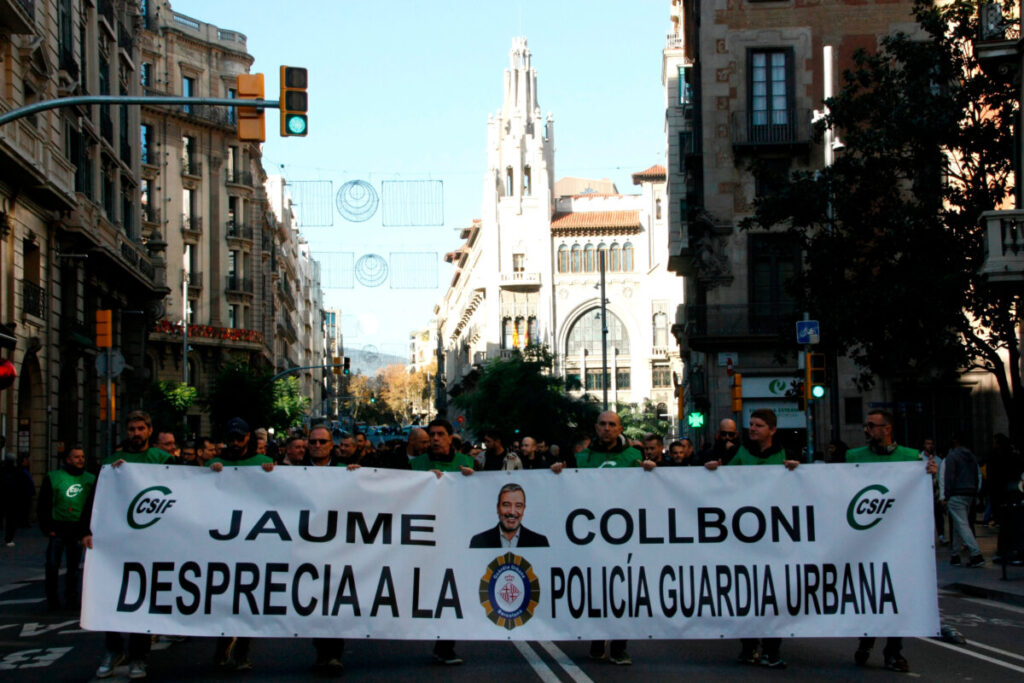 Unes 200 persones convocades pel sindicat CSIF s’han manifestat aquest dimecres pel centre de Barcelona per reclamar millores laborals a la Guàrdia Urbana i denunciar “incompliments” del conveni.