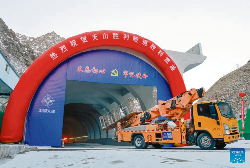 “Xinjiang ha entrat en un període caracteritzat per una escalada de les inversions i una velocitat de desenvolupament sense precedents”, afirma Zheng Mingquan, subdirector de l’administració regional d’aplicació de la llei de transport. La construcció del túnel va començar l’abril del 2020 i ha afrontat desafiaments, com el fred extrem, grans altituds, tensions del terreny, forta activitat sísmica i estrictes requisits ambientals, afirma MaoJinbo, un enginyer del projecte.