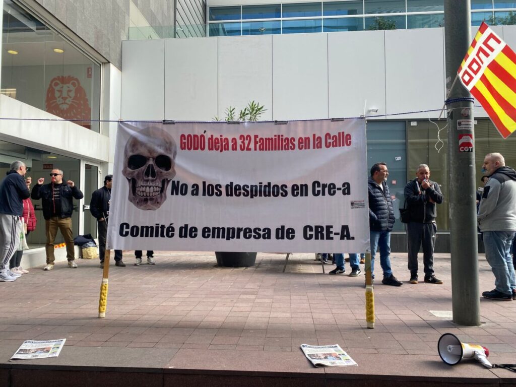 Els 32 treballadors que queden en plantilla de l’empresa Cre-a, la filial del grup Godó que s’encarrega dels treballs d’impressió, estan en vaga indefinida des del dia 3 de febrer. Han pres aquesta decisió després que la direcció del grup hagi decidit tancar i liquidar la planta on s’hi imprimien, fins ara, els diaris La Vanguardia i Mundo Deportivo. Aquest dilluns passat, els vaguistes han fet una concentració de protesta contra aquest tancament empresarial davant la seu central del grup, a la plaça Francesc Macià de Barcelona.
