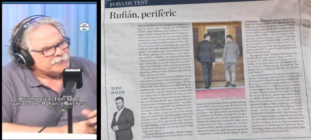 En la seva intervenció radiofònica, Tardà va ser contundent: “Últimament he llegit articulistes, gent del vostre ram, periodistes, opinadors, molts dels quals mai a la vida, mai a la vida, han militat en un partit polític. De fet, molts dels quals fins i tot treuen pit de no haver militat en un partit polític perquè consideren que si no han militat mai en un partit polític tenen més capacitat intel·lectual o més capacitat per poder sentenciar. Ahir mateix, el Toni Soler parlava de Rufián, el perifèric. Això és fals, denota ignorància, denota que no han estat mai dins un partit polític i que possiblement no estan a la base del militant que és el cada dia batalla a tot arreu. No, en Rufián no és perifèric de res. A Esquerra Republicana de Rufians en tenim, n’hi ha a les bases. Ara! Tal vegada hem fallat en no haver estat capaços de tenir més Rufians en els òrgans de govern”.