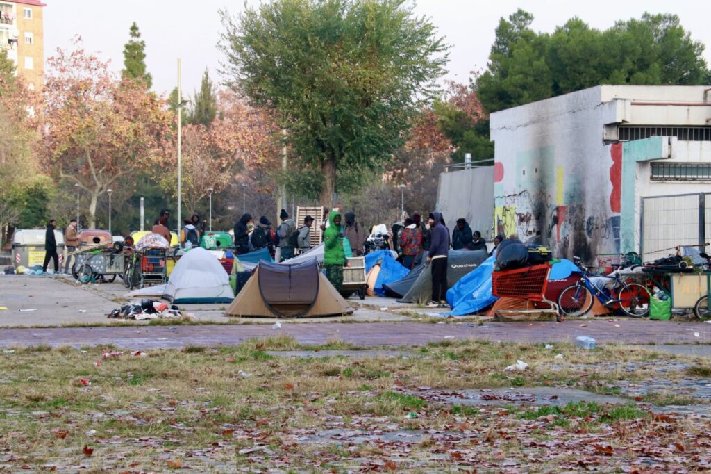 Prop d’un centenar de persones han passat la nit al ras davant de l’antic institut B9 de Badalona, després de ser desallotjats aquest dimecres. Aquests ciutadans han improvisat una acampada amb tendes de campanya, fogueres i ferralla a la plaça situada just davant de l’espai, que està acordonada per la policia.