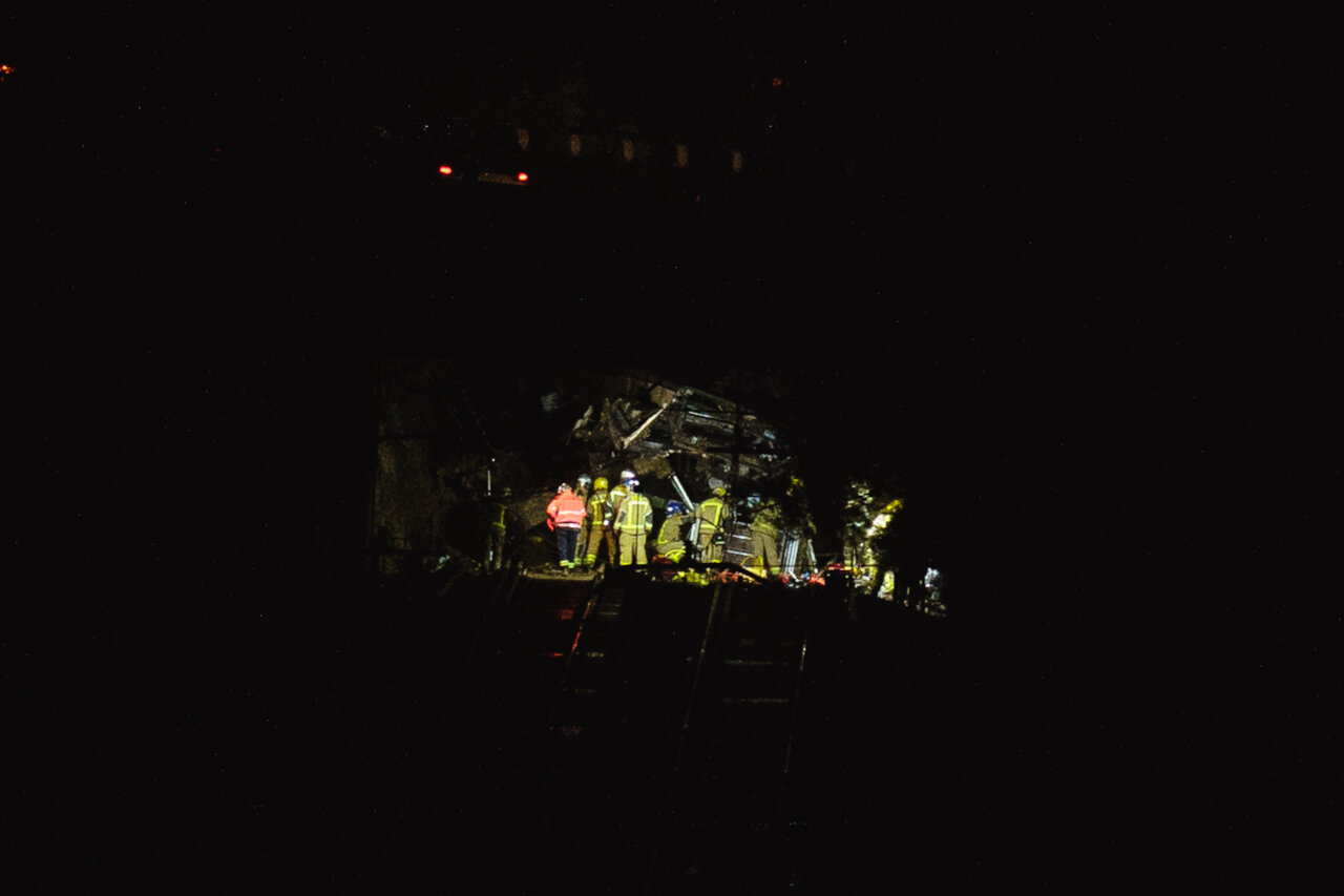 Equip d'emergència treballant en l'accident de tren a Gelida