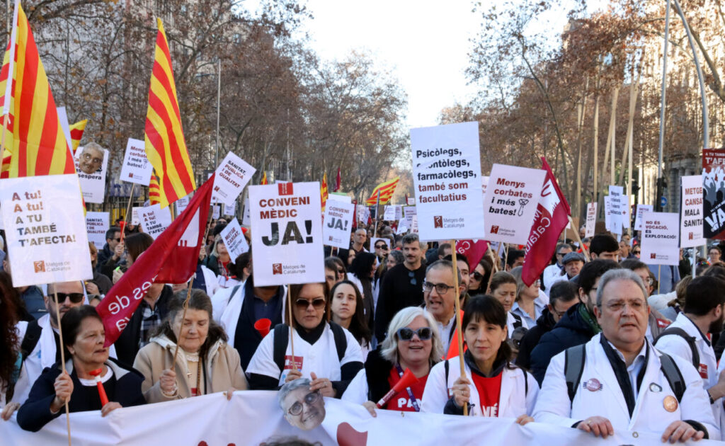 El sindicat Metges de Catalunya ha xifrat el seguiment de la vaga d’aquest dilluns en un 39%., mentre que el Departament de Salut l’ha xifrat en un 6,2%. Els metges de tot Espanya estan cridats a l’aturada durant tota la setmana per reclamar un conveni propi i altres mesures que introdueixin millores, sobretot vinculades a l’esgotament professional i la sobrecàrrega. A Catalunya, però, el sindicat convocant ha fet una convocatòria pròpia de vaga aquest dilluns i divendres per interpel·lar directament el Departament de Salut.
