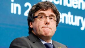Se da la circunstancia que Sánchez ha tenido que comparecer junto a una bandera española y con el retrato del rey Felip VI colgado en la pared de la habitación de la prisión donde había instalada una pequeña mesa desde donde Sànchez ha contestado por videoconferencia a las preguntas de los periodistas.