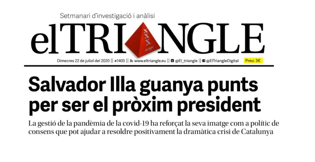 EL TRIANGLE publicaba un editorial en el número 1405 de su edición en papel, del pasado 22 de julio, en el cual titulaba: «La Hora de Salvador Illa«. De hecho, la portada de aquel número destacaba como titular principal que «Salvador Illa gana puntos para ser el próximo presidente». En el semanario se argumentaba que «la gestión de la pandemia de la covid-19 ha reforzado su imagen como político de consenso que puede ayudar a resolver positivamente la dramática crisis de Cataluña».
