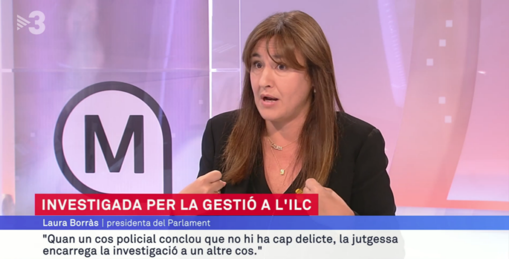 La presidenta del Parlament, LauraBorràs, se ha enfrentado a la presentadora de ElsMatins de TV3, LídiaHeredia, cuando ésta le ha preguntado por los correos electrónicos incluidos en la causa sobre el presunto fraccionamiento de contratos de la Institució de les Lletres Catalanes (ILC) por el que se investiga a Borràs. Indignada, la presidenta de la cámara catalana ha asegurado que «colocar estos mails aquí es dar puerta de entrada a la intoxicación del Estado», señalando así a la cadena.