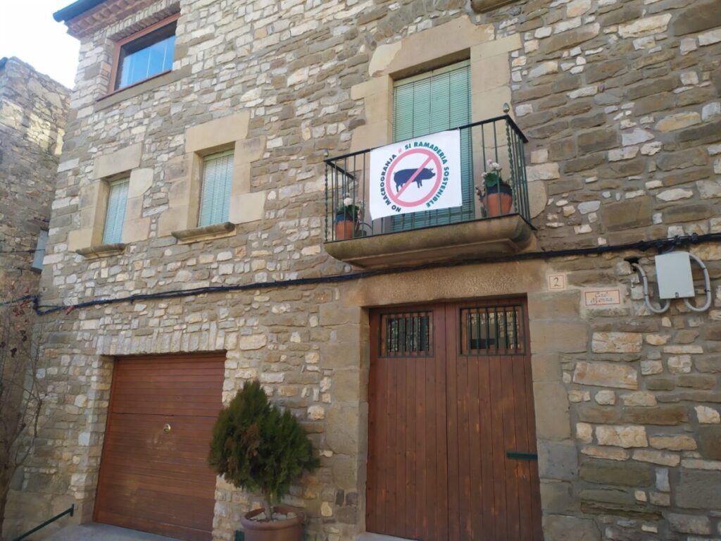 A lo largo de las últimas semanas, en las ventanas y balcones de las viviendas de El Canós han aparecido numerosas pancartas en las que se puede leer “No macrogranja, sí ramaderia sostenible”. Los vecinos del pueblo, junto a los de Muller y L’Aranyó, todos ellos en el Els Plans de Sió, se han agrupado a través de una página de Facebook que ya cuenta con 255 miembros y donde exponen sus argumentos.