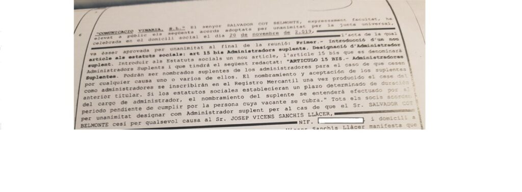 Tanto la ley catalana como la española consideran incompatible que directivos de la administración ocupen cargos en empresas privadas. El texto de la ley catalana está calcado del de la española. Dice: “los altos cargos al servicio de la Generalitat deben ejercer sus funciones con dedicación plena y absoluta y no pueden compatibilizar su actividad con el ejercicio de ningún otro puesto, cargo, representación, profesión o actividad mercantil, profesional o industrial, de carácter público o privado, por cuenta propia o ajena”. En la Declaración de Bienes Patrimoniales, Vicent Sanchis hizo constar que no tenía ningún cargo en Comunicació Vinària. En la Comisión de Control de la Corporación Catalana de Medios Audiovisuales (CCMA) del Parlament, el pasado 25 de febrero, reconoció que ocupaba el cargo de administrador suplente pero adujo que era compatible con la dirección de TV3. Afirmó que mientras no asumiese el cargo de administrador no incurriría en incompatibilidad y que si el titular, Salvador Cot, cesase o tuviese algún problema de salud, entonces él decidiría cuál de los dos cargos elegía: la dirección de TV3 o la administración de Comunicació Vinària. El artículo 147 del Reglamento del Registro Mercantil, que regula la figura de los administradores suplentes, señala, sin embargo, que “deberán reunir en el momento de su designación los requisitos legal o estatutariamente previstos para ser nombrado administrador”.