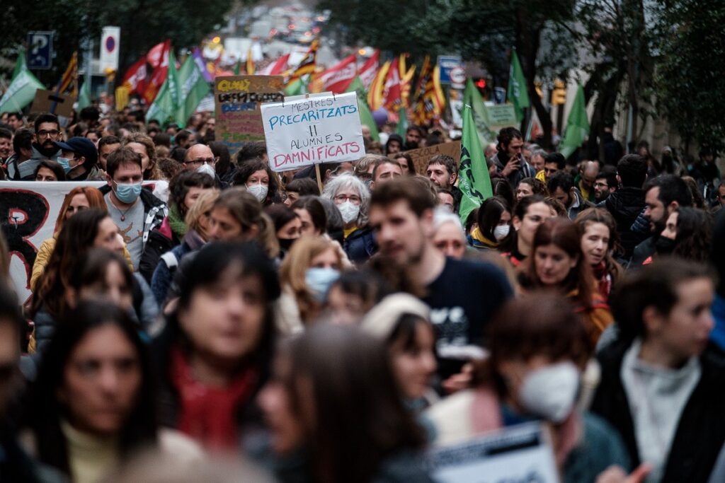Durante los seis días de huelga que convocaron los sindicatos en marzo se vieron fisuras en la unidad sindical -que están tratando de recomponer-, sobre todo cuando se produjeron actos como el ataque a la Fundación Bofill o a la sede de Esquerra Republicana. USTEC y UGT se hicieron suyos estos actos de protesta, mientras que otros sindicatos, especialmente CC. OO, se desmarcaron.