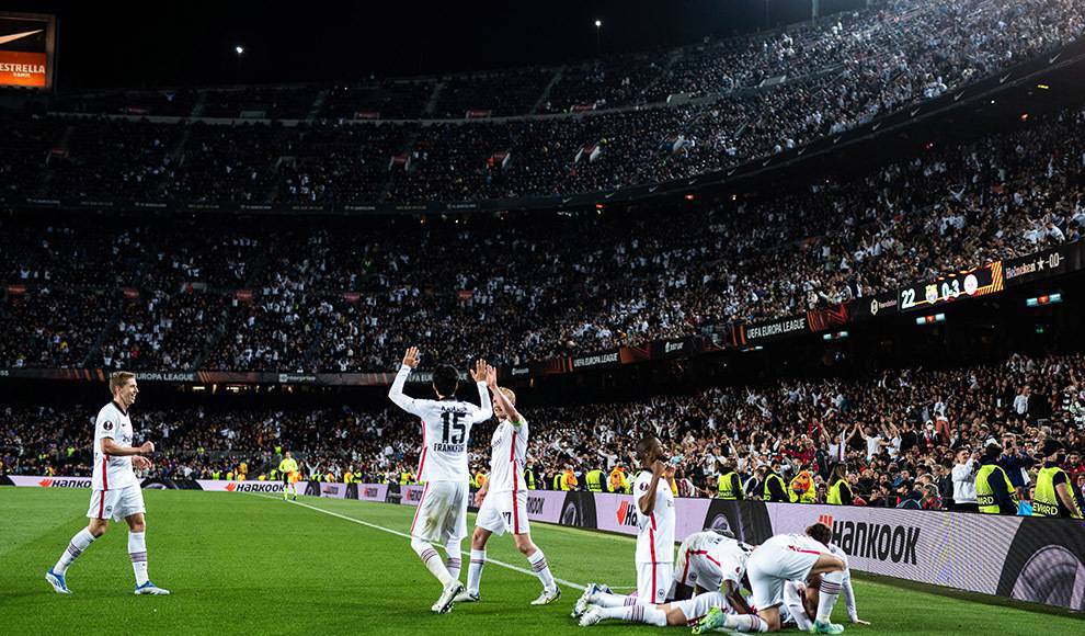 El 14 de abril, el día de la visita del Eintracht de Frankfurt, también fue especialmente violento. A raíz de estos hechos, se abrió una investigación policial para determinar los autores de los ataques y hasta ahora se ha detenido a dos personas. En los momentos previos al partido, los efectivos policiales detectaron escondida una bolsa de grandes dimensiones llena de bastones y otros objetos contundentes, como por ejemplo bates de béisbol. No ha trascendido, sin embargo, que también dentro del estadio se produjeron incidentes de todo tipo contra socios del FC Barcelona, entre otros motivos porque, para ahorrar, se ha rebajado el contingente de seguridad.