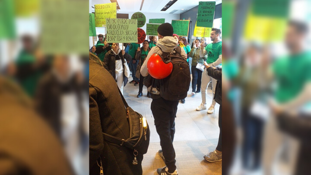 Una veintena de activistas de la Plataforma de Afectadas por la Hipoteca (PAH) han ocupado las oficinas de CaixaBank de L’Hospitalet de Llobregat para reclamar alquileres sociales para dos mujeres adheridas a la entidad. Los manifestantes que han participado en la acción sorpresa llevaban pancartas con mensajes como «No somos mercancías. La vivienda es un derecho» o «Sí se puede, pero no quieren», y gritaban la consigna «No tenemos miedo».