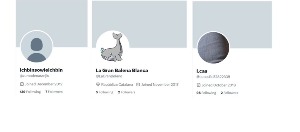 Muchos de los perfiles creados para quejarse del servicio de Rodalies son trolls; es decir, no se sabe quién está detrás y tienen muy pocos seguidores. En ocasiones, no tienen ninguno. Es el caso, por ejemplo, de @LaGranBalena, que se presenta como el nombre de La Gran BallenaBlanca, da la “República Catalana” como ubicación y que se creó en noviembre de 2017, un mes después del referéndum del 1 de octubre de ese año. En estos seis años ha logrado tener dos seguidores. El primer mensaje suyo es de marzo del 2018 y es un reenvío de un tuit de Carles Puigdemont. Después de otros tres posts -incluido uno con un huevo de Pascua con la bandera estelada– empezó su campaña contra Rodalies en junio del 2021. Ha encadenado decenas de mensajes en esta línea desde entonces. El 4 de octubre, publicaba un post de Ferrocarriles de la Generalitat que aseguraba que todas sus líneas funcionaban según el horario establecido y lo comentaba así: “Hola, ¿podéis enseñar a los inútiles y perezosos de @rod4cat a trabajar así de bien? ¡Gracias! Nos tienen ya hasta las narices y a punto de necesitar un psicólogo diario y quedarnos sin trabajo por sus retrasos. Agradezco cuando ya estoy en plaza Ctaalunya y puedo por fin coger los FGC”.