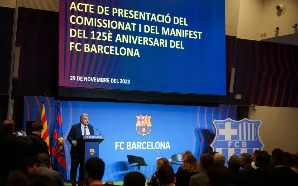 Unas horas más tarde, al mediodía, en el Auditori 1899, Joan Laporta presidió ese acto realmente más vacío de contenido de lo que se presumía de presentación del 125º Aniversario, reducido a un discurso más bien mediocre del comisionado, David Carabén, que además hizo público un «Manifiesto del 125º aniversario del FC Barcelona», un documento frío y poco trabajado con la pretensión de establecer un marco de celebración futuro, pero que no dejó de ser un pésimo resumen de un pasado mucho más excepcional, brillante y emotivo de lo que refleja.