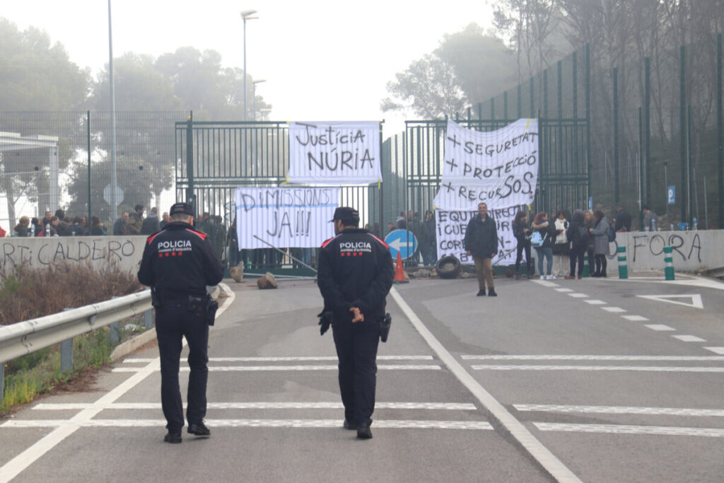 Dos agentes de los Mossos d'Equadra ante las puertas del centro penitenciario Mas d'Enric durante la jornada de protesta (ACN)