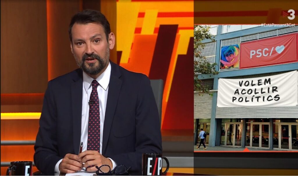 Òscar Andreu, que presentó el programa ayer en compañía de Jair Domínguez, fue el encargado de hacer ese comentario, que redondeó mostrando un montaje fotográfico de la sede del PSC con una gran pancarta en la fachada donde se podía leer “Queremos acoger políticos”. Andreu suele recuperar a los GAL para intentar desprestigiar a los socialistas, no tiene ninguna manía en presentarse como independentista, aunque cobra de un medio público teóricamente objetivo como TV3, o en replicar a la dirigente del PSC Eva Granados cuando se opuso a la celebración de un referéndum de independencia con este post en las redes sociales: “La mayoría de nacionalistas españoles (de izquierdas, de centro o de derechas) lo tienen claro: las cuestiones importantes las dirime el Rey, el ejército, el Ibex35, sus medios y sus partidos. Y si no, «haber ganao la guerra».