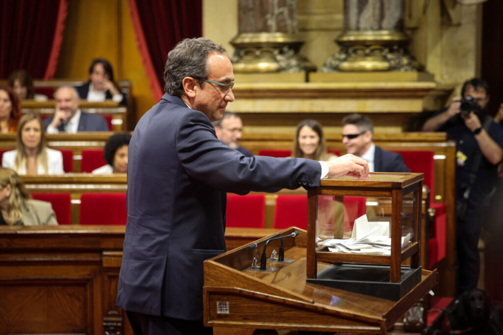 En su primer discurso como presidente de la cámara, después de un acuerdo entre Junts, ERC y la CUP, el diputado de Junts+ también ha defendido que en sede parlamentaria «se tiene que poder hablar de todo, sin presión de ningún poder público ni la amenaza de poder ser privado de libertad».