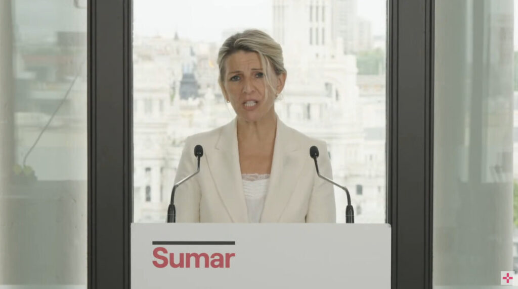 La vicepresidenta segunda del gobierno español, YolandaDíaz, ha anunciado este lunes que dimite como coordinadora de Sumar después de los resultados de las elecciones del 9-J, que han otorgado a su formación tres eurodiputados. En un mensaje grabado, Díaz ha admitido que los comicios europeos han servido de «espejo» después de meses en que ha admitido que no ha hecho «las cosas que tenía que hacer» y las que «mejor sabe hacer». «Es mi responsabilidad», ha apuntado, y «me hago cargo», ha señalado.