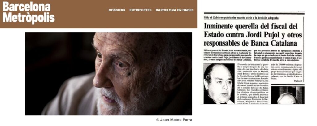 El caso Banca Catalana ya hace tiempo que pasó a la historia. Las reflexiones de José María Mena en Barcelona metrópolis llegan 10 meses antes de que Jordi Pujol sea juzgado por otra causa. Se le acusa de asociación ilícita, blanqueo de capitales, falsificación de documento mercantil, contra la Hacienda pública y frustración de la ejecución y el juez le pide 9 años de prisión. Cuando comience este juicio, el ex presidente de la Generalitat tendrá 95 años. José María Mena y Carlos Jiménez Villarejo ya hace tiempo que se han jubilado. Se ahorrarán las llamadas insultantes, que hoy serían mensajes amenazadores en las redes sociales.