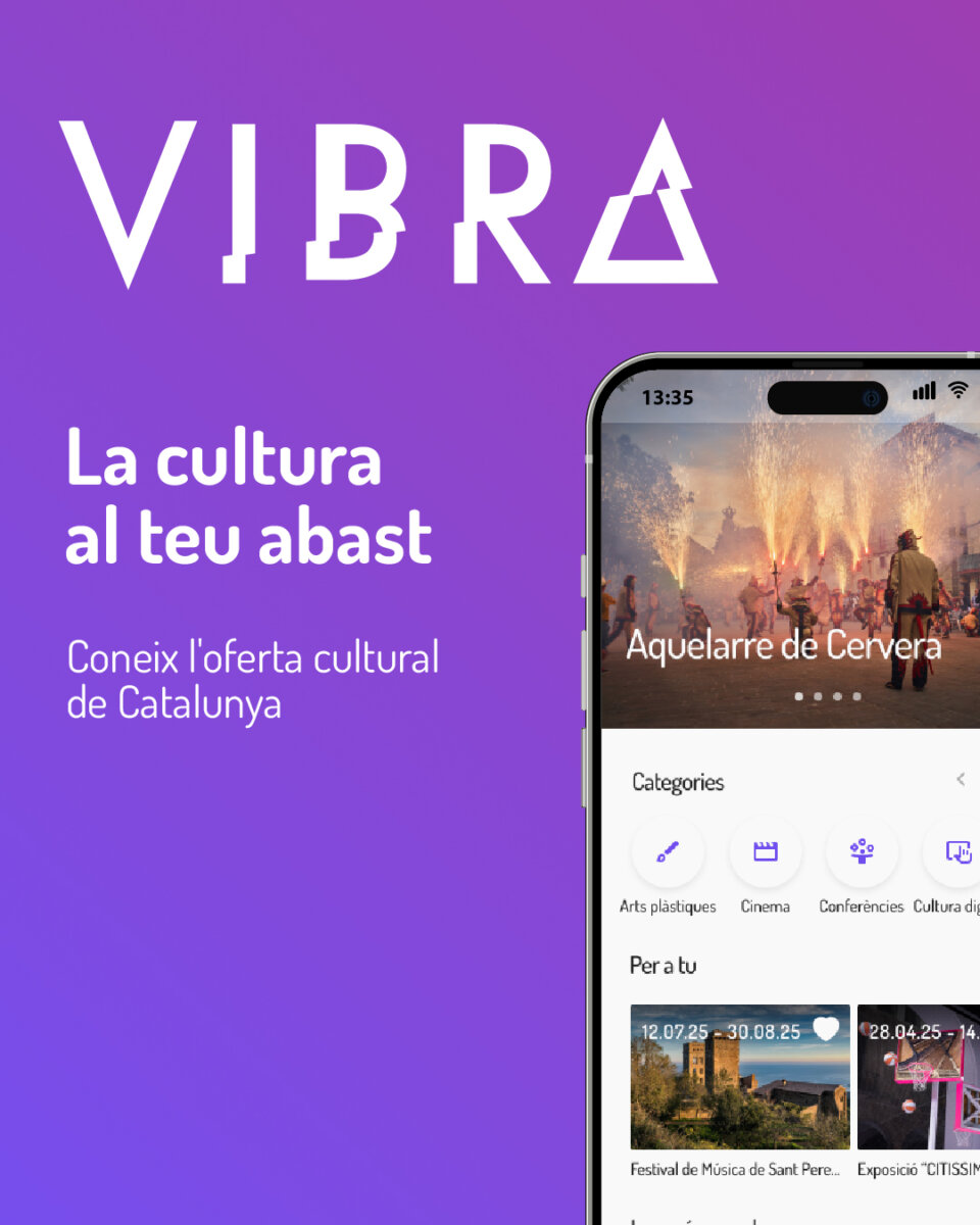 Impulsada por el Departamento de Cultura de la Generalitat de Catalunya, Vibra te permite acceder a la cultura de todo el territorio de manera fácil, rápida y gratuita. La puedes descargar tanto para Android como para IOS.