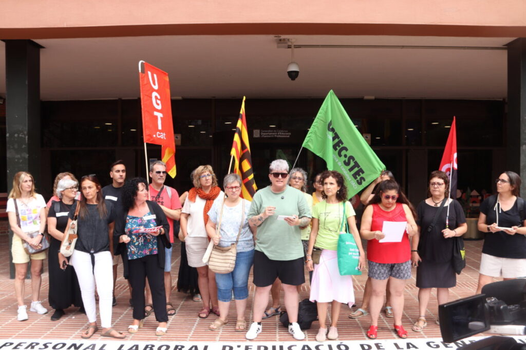 Los sindicatos CCOO, UGT, USTEC-STEs(IAC), JUNTS-SDRC y CGT, del Comité Intercentros (CI) del personal laboral del Departamento de Educación, que se han concentrado este miércoles ante la consejería, han cargado en un comunicado conjunto contra «el paro» de las negociaciones para la mejora de las condiciones laborales y salariales del personal con contrato laboral: Personal de Atención Educativa (PAE), personal de las guarderías y personal laboral docente (profesorado de religión, centros integrados y docentes de Formación Profesional).