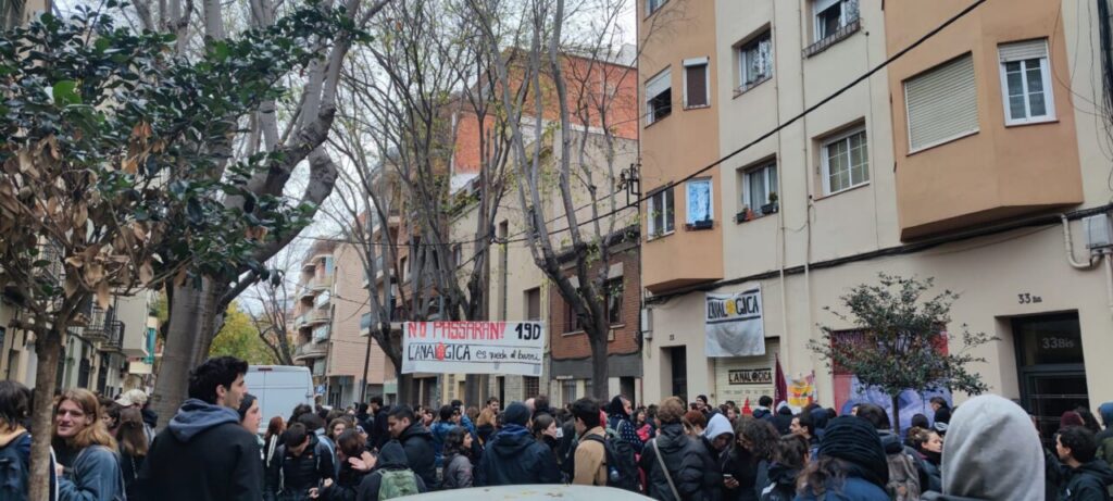 «L’Analògica se queda en el Guinardó» ha sido el clamor más escuchado este viernes, ante la previsión de desalojo del espacio popular situado en la calle Torre Vélez, 33, del barrio del Guinardó de Barcelona. Cerca de un centenar de personas se han concentrado pacíficamente desde primera hora de la mañana para tratar de impedir el lanzamiento, el cual, finalmente, se ha aplazado hasta el 21 de enero.