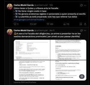 En cualquier caso da mucho miedo e indignación. La indignación ha llevado al ex senador de Compromís Carles Mulet García a presentar una querella ante la Fiscalía Provincial de Castellón por los delitos de traición, conspiración, provocación a delitos contra el orden constitucional, delito contra las instituciones del Estado y delito de amenazas graves, con la agravante de publicidad. Mulet también ha presentado una denuncia contra el torero ultraderechista Fran Rivera que grabó un vídeo en el que pedía a Trump que no se detenga en Venezuela y que actúe igual en España. Su vídeo, sin embargo, tiene menos éxito que el de Quiles: Unos 3.500 me gusta este martes.