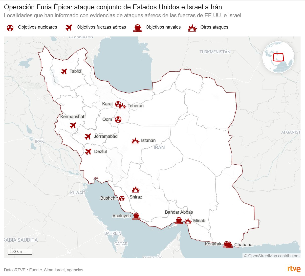 Israel y Estados Unidos han ejecutado un ataque conjunto contra Irán, calificado de «preventivo» por las dos administraciones. El ejército israelí ha activado las sirenas y ha enviado alertas a los teléfonos móviles para que la población se refugie ante la posibilidad de represalias con misiles. El presidente norteamericano, Donald Trump, ha confirmado una «operación masiva y en curso» y ha afirmado que el objetivo es evitar que Irán «consiga un arma nuclear» y neutralizar «amenazas inminentes». Trump ha advertido que destruirán «sus misiles» y «arrasarán su industria armamentista» y ha acusado al régimen iraní de poner en peligro a Estados Unidos, las tropas desplegadas en el extranjero y los aliados.