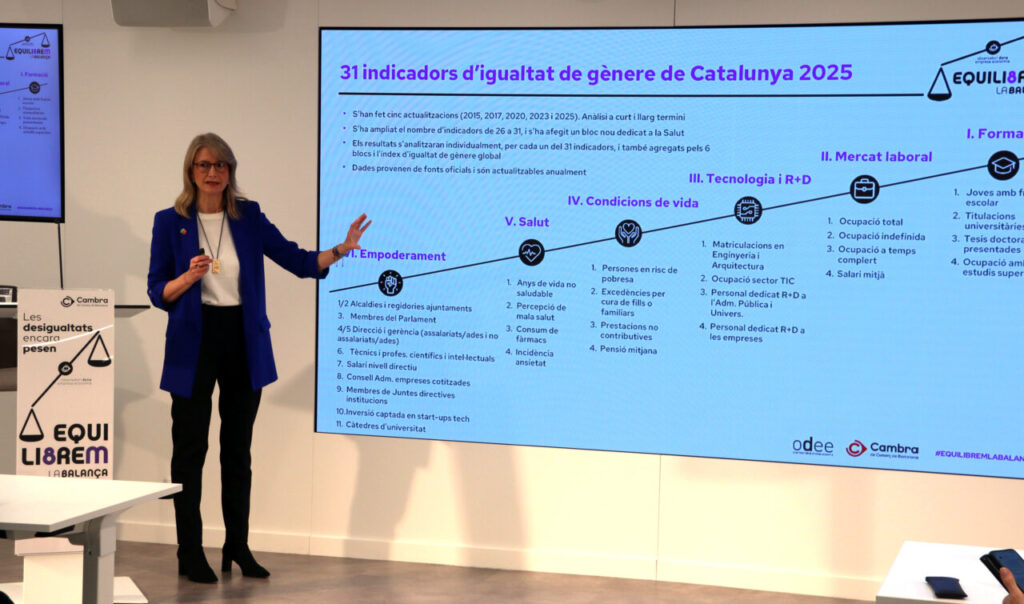 El Observatorio Mujer, Empresa y Economía (ODEE) de la Cámara de Comercio de Barcelona alerta de que las desigualdades de género siguen siendo elevadas en Cataluña y que los avances hacia la igualdad van con lentitud. El informe Indicadores de igualdad de género de Cataluña 2025, presentado este viernes a las puertas del 8 de marzo, Día Internacional de la Mujer Trabajadora, constata que, a pesar del mayor nivel formativo de las mujeres, las diferencias con los hombres persisten en ámbitos clave como los salarios, el empleo o el peso en sectores estratégicos.